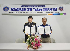 (뉴스코리아=청양) 최신 기자 = 충청소방학교는 4월 30일 국제적 교육인증 시설을 갖추고 있는 태국 실화재 교육기관(D.D. Fire & Safety Training Center)과 양해각서(MOU)를 체결했다.충청소방학교 청양 청사 1,925㎡ 부지 규모에 실화재 훈련시설 플래시오버셀, 백드래프트셀 등 총 8개동으로 구성된 훈련시설이 올해 6월까지 준공될 예정이다.실화재 훈련시설이 완공되면 화재현장과 유사한 교육환경에서 충청권 소방공무원들의 화재대응기술을 향상시키고 실제 경험된 화재 이상 현상 판단을 통해 신속하고 안전하게 국민