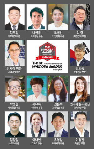 (뉴스코리아=방콕) 김대민 특파원 = 대한민국과 태국의 우정과 협력을 상징하는 ‘제1회 마이코리아 어워즈 인 방콕(The 1st MYKOREA Awards in Bangkok)’이 현지시간으로 오는 11월 14일(목) 오후 2시, 방콕 한인회관에서 열린다.이번 시상식은 한·태 양국의 상호 이해를 넓히고 각 분야에서 양국의 발전에 기여한 인물들의 공로를 기리기 위해 마련됐다.시상은 △외교·행정 △기업·경제 △문화·예술 △사회공헌 △교육·학술 △스포츠 △미래세대 △특별상 등 총 8개 부문으로 진행되며, 각 부문별 위원회의 공정한 심사를