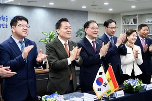 (뉴스코리아=수원) 김성덕 기자 = 수원시(시장 이재준)와 볼리비아 산타크루즈시가 한국·볼리비아 수교 60주년을 기념해 ‘우호협력교류의향서’를 체결했다.이재준 수원시장과 맥스 조니 페르난데스 사우세도(Max Johnny Fernández Saucedo) 산타크루즈 시장은 28일 비대면 화상회의 방식으로 교류의향서를 체결했다.수원시와 산타크루즈시는 경제, 문화, 행정, 예술 등 다양한 분야에서 교류를 추진할 계획이다.이번 체결식에는 의향서 체결에 이르기까지 두 도시 간 가교 역할을 한 산타크루즈 기독교대학(UCEBOL)의 정치현 박사