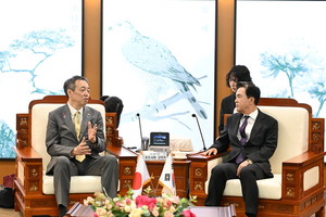 (뉴스코리아=홍성) 최신 기자 = 김태흠 충남도지사는 11일 도청 접견실에서 미즈시마 고이치 주한 일본대사의 예방을 받고, 한·일 지방정부 간 교류·협력 확대 방안을 논의했다.김 지사와 미즈시마 대사의 이날 만남은 한일 국교 정상화 60주년을 기념해 충남도와 일본 지방자치단체 간 우호 협력 관계 확대와 경제·문화·인적 교류 등 다방면에서 실질적인 협력 방안을 논의하기 위해 마련했다.이 자리에서 김 지사는 “한·일 양국은 글로벌 도전 과제에 함께 대응하고, 미래 세대 간 교류를 활성화 하며, 상호 이해와 신뢰를 더욱 공고히 하는 것이