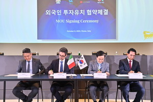 (뉴스코리아=로마) 함영란 기자 = 김태흠 충남도지사가 이탈리아에서 글로벌 모빌리티·화학 기업으로부터 대규모 투자를 유치했다.유럽을 방문중인 김 지사는 8일(현지시각) 이탈리아 로마에서 스테파노 발리스타 에니 라이브 CEO, 이종호 LG화학 유럽법인 대표, 이완섭 서산시장과 투자협약(MOU)을 체결했다.이 자리에는 주세페 리치 에니 산업트랜스포메이션(Industrial Transformation) 최고운영책임자(COO), 라포 피스텔리 에니 공보담당 이사 등이 참석해 자사의 신재생 에너지 등 기후위기 대응을 위한 지속 가능한 연료