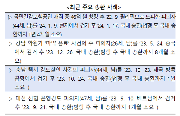그 간 경찰은 도피사범 검거·송환에 역점을 둬왔고, 그 과정에서 각국 경찰 및 법집행기관과 단단한 공조 기반을 구축해왔으며, 이러한 노력의 결과로 지난 한 해 470명의 해외 도피사범을 검거하여 국내로 송환할 수 있었다.