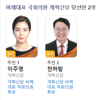 끝으로 개혁신당 비례대표 당선인은 이주영, 천하람, 총 2석을 차지했다.