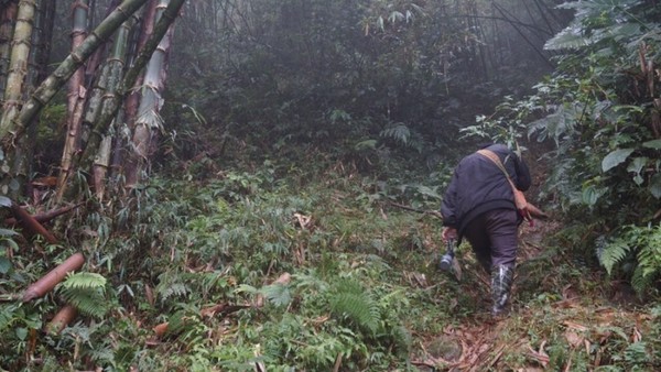 바깥주인을 따라 길을 나섰고 마을 뒷산을 올라가자 보기와 다르게 경사가 심하고 땅바닥은 비에 젖어 미끄러워 오르기가 여간 쉽지 않다.