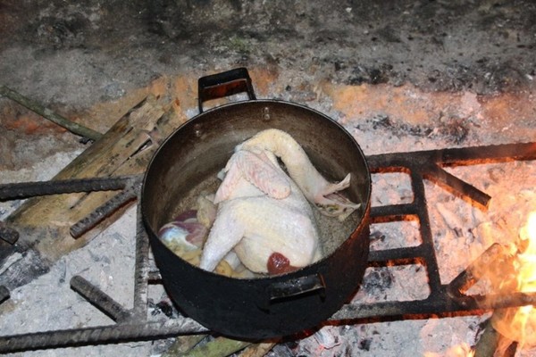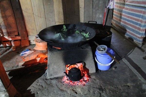 부엌 중앙에는 철근을 용접해 만든 거치대에 냄비를 올려놓고 마른 삭정이에 불을 지펴 요리하는 것이 조리시설의 전부이다.