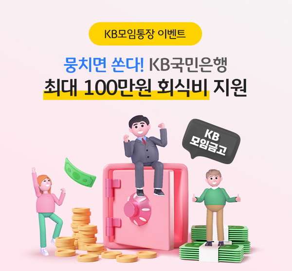 한편, KB국민은행은 ‘KB모임금고’ 출시를 기념해 회식비 지원금 이벤트를 같이 진행한다. KB모임통장 서비스를 가입한 총무가 모임원을 초대하고 KB모임금고를 신규 가입 후, 이벤트에 응모하면 추첨을 통해 30개 모임에 회식비를 지급한다. 당첨된 모임에는 1인당 5만원을 지급하며, 최대 100만원까지 지원금을 받을 수 있다.
