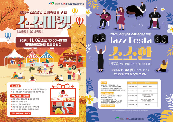 천안시에서는 처음 진행되는 소상공인의 날 기념행사로서 지역 경제를 활성화하고 소상공인과 지역주민 간의 소통과 연대를 강화하고자 기획되었다. 1부‘소소마켓’은 ▲소상공인부스 ▲청년소상공인부스 ▲어린이 무료 체험부스 ▲에어바운스 등으로 구성되었으며, 2부‘재즈페스타’는 천안시 소상공인 문화예술인의 무대를 시작으로 다양한 공연이 채워질 예정이다.