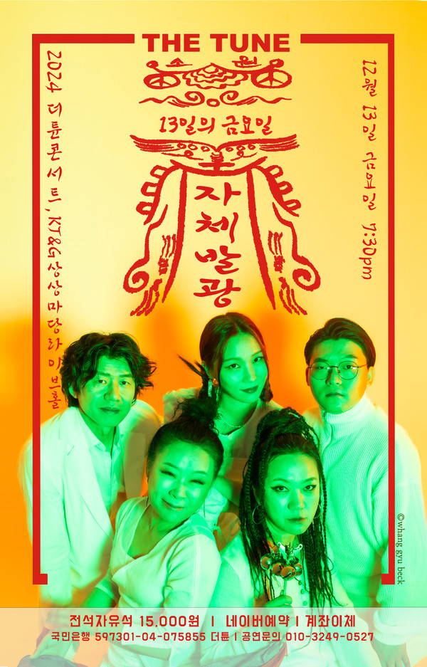 (뉴스코리아=서울) 박지혜 기자 = 뮤직밴드 더튠(대표 : 이성순)이 2024년 12월 13일(금) 19:30 KT&G 상상마당 라이브홀(서교동 367-5)에서 2024연말콘서트 <자체발광 : 13일의 금요일>을 한다.