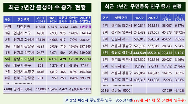 (뉴스코리아=아산) 최신 기자 = 출생아 감소가 국가적 문제로 대두되며 지방 소멸 우려가 커지고 있다. 이런 가운데 수도권 인구 쏠림 현상에도 불구하고 독보적인 출생아 증가와 인구 성장을 기록한 아산시가 주목받고 있다.