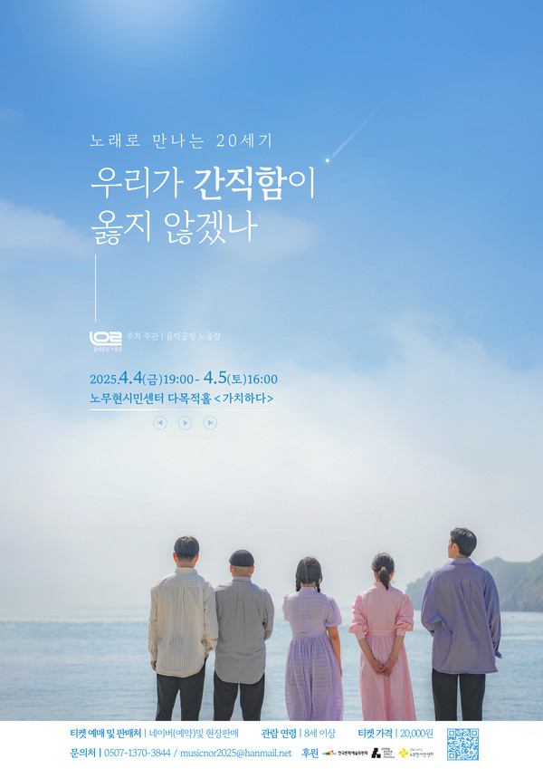 (뉴스코리아=서울) 박지혜 기자 = 음악공장 노올량(대표 : 민소윤)이 오는 2025년 4월 5일(금) 19:00, 6일(토) 16:00 2회에 걸쳐 노무현시민센터 다목적홀 <가치하다> 에서 <노래로 만나는 20세기 '우리가 간직함이 옳지 않겠나'> 를 공연한다.