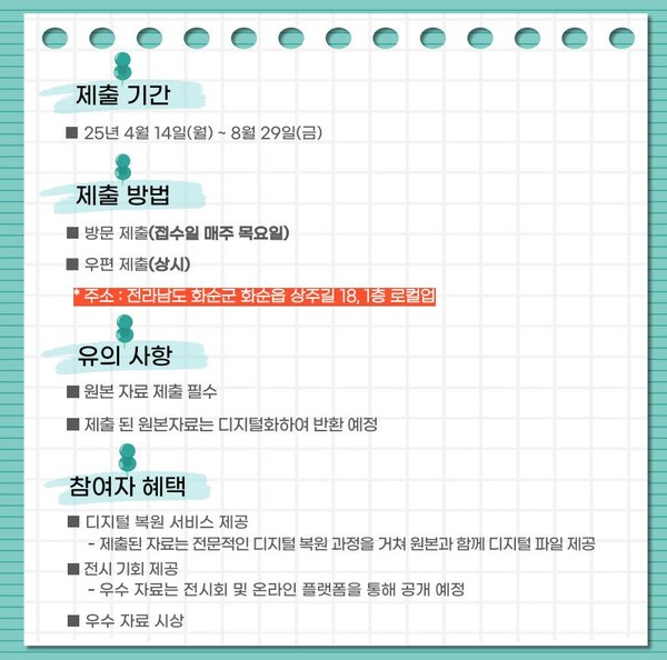 3. 참가 자격 : 화순 관련 자료를 소장하고 있는 개인 또는 단체로서 자료 제공에 동의한 자
