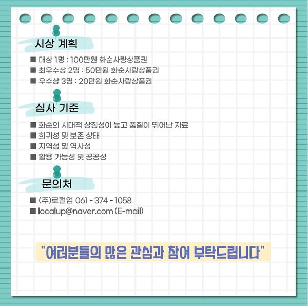 - 대상(1명) : 100만 원 상당의 화순사랑상품권