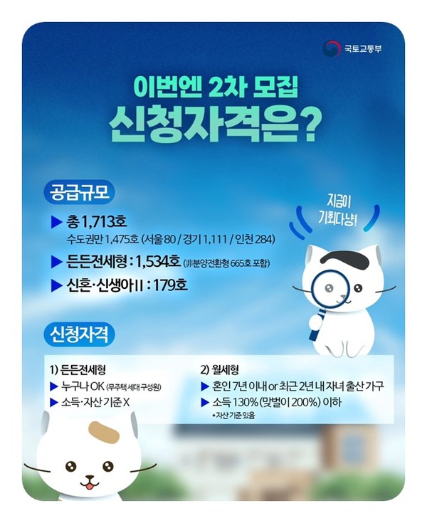 신청자격은? 공급규모만 총 1713호로, 그중 수도권에 1475호(서울 80/경기 1111/인천 284).가 공급된다.