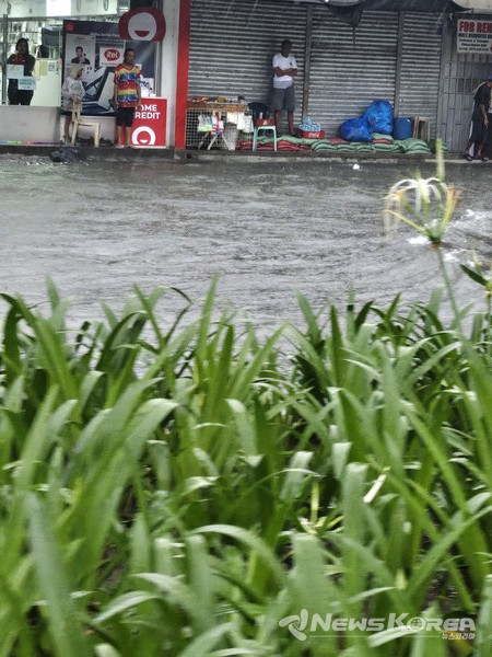 (뉴스코리아=마닐라) 황장익 특파원 = 현지시각 22일(화) 오전 10시 무렵 필리핀 루손지역에 쏟아진 집중호우로 수도 마닐라가 물난리를 겪고 있다. 기자가 공항으로 이동하기 위해 이동중인 그랩 택시가 50여분 동안 미동도 하지 못하고 제자리에 멈춰 서있다.