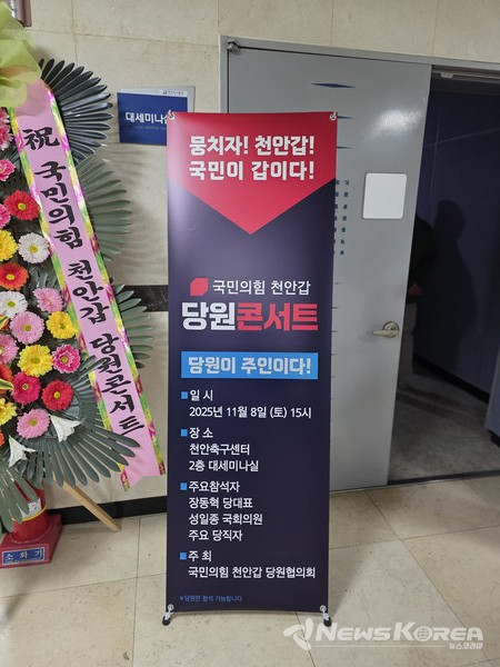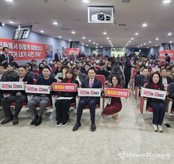 (뉴스코리아=천안) 최신 기자 = 국민의힘 장동혁 대표가 8일 오후 천안축구센터에서 열린 '국민의힘 천안갑 당원콘서트'에 참석해 내년 지방선거를 앞두고 충남권 결집을 강조했다.