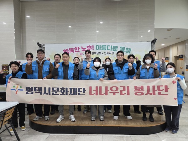 (뉴스코리아=평택) 이창주 기자 = 경기도 평택시문화재단(대표이사 이상균) 임직원으로 구성된 ‘너나우리 봉사단’이 지난 19일 평택 남부노인복지관을 찾아 뜻깊은 자원봉사활동을 펼쳤다고 밝혔다.