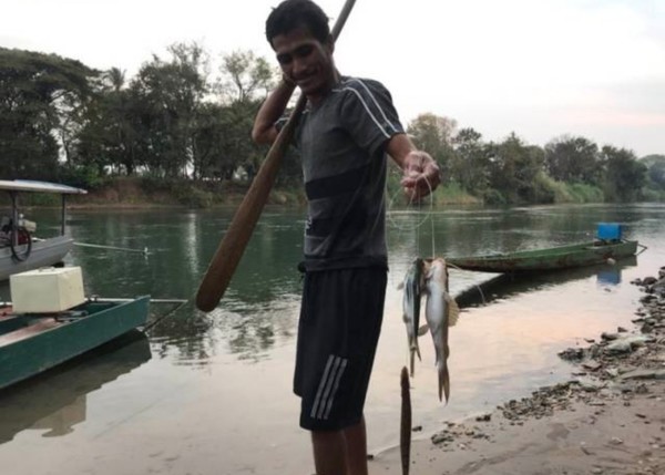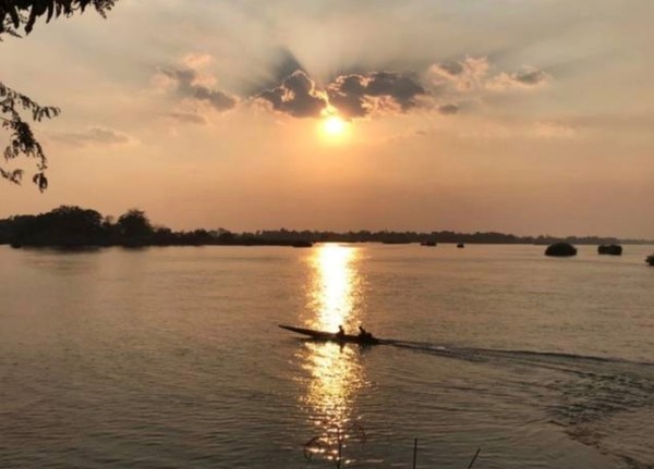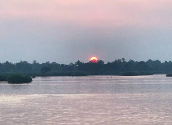일출을 보고 있는데 동네 주민 한명이 지난밤 강가에 설치한 통발에서 잡은 물고기 몇마리를 건져 낸다.