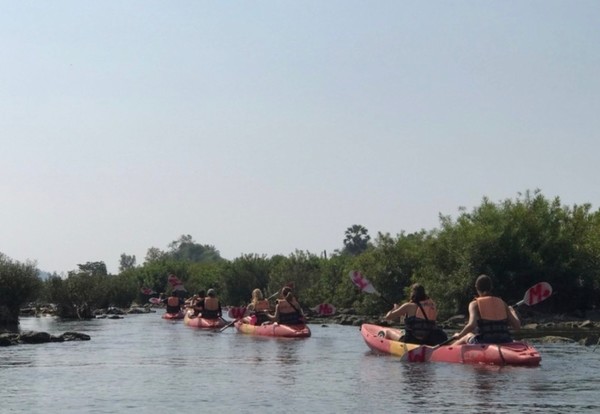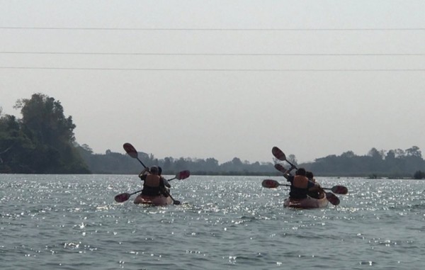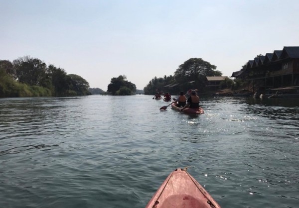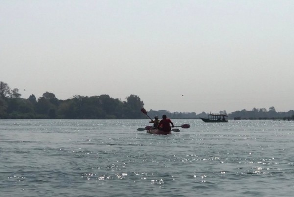 가이드가 이라와디 민물 돌고래 서식처로 이동하는데 중간에 급물살 지역이 있다며 제공된 방수백을 일일이 확인하며 카약에 단단하게 고정시키고 몇 번의 주의를 주고서 모두 천천히 노를 저어 나갔다.