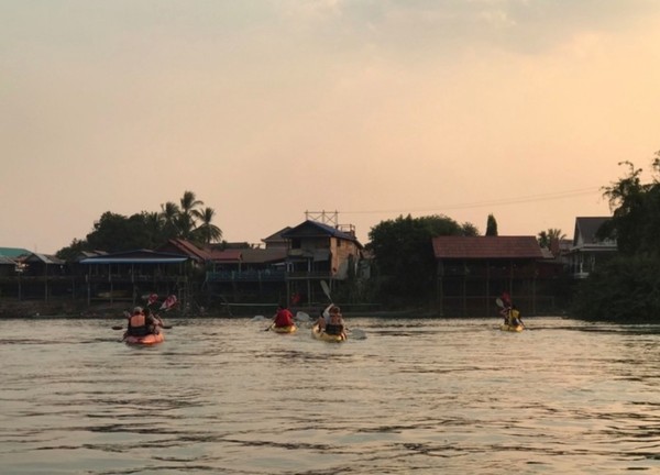 출발점에서 카약킹으로 다른 섬인 돈솜으로 이동해 소규모 폭포에서 물놀이를 하고 근처 비치로 이동해 점심식사를 마치면 다시 카약킹하여 캄보디아 국경 근처의 이라와디 돌고래가 서식하는 곳에서 돌고래를 관찰하고 육지로 이동해 차량에 카약을 싣고 폭포를 보고 나카상에서 카약으로 돈뎃으로 이동하는 코스라 설명한다.