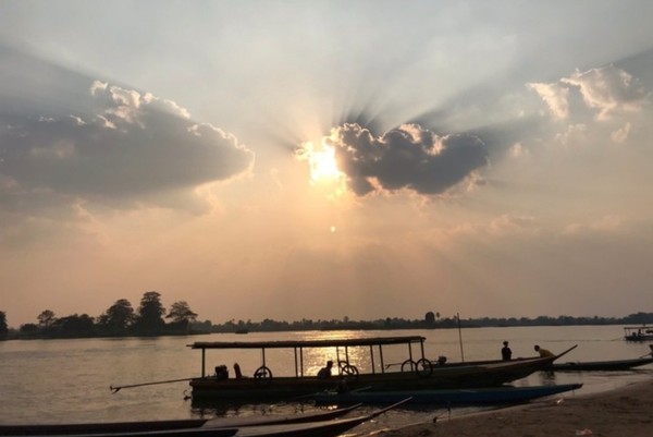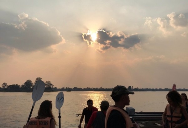 천천히 노를 저으며 나아가자 강 너머로 서서히 지고 있는 일몰이 멀리 보인다.