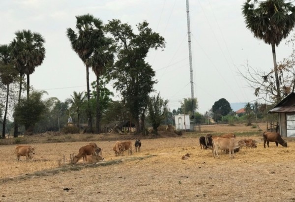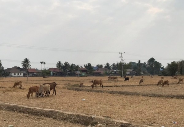 전형적인 라오스 시골 풍경이 나오고 메마른 마른 논에 방목되어 있는 소들이 곳곳에 많이 보인다.