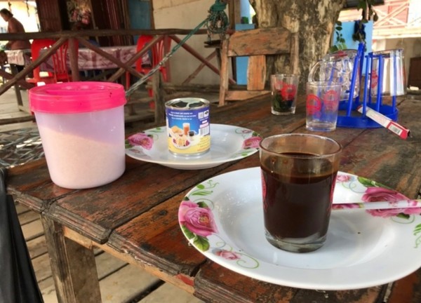 커피를 시키자 할아버지가 아침에 통발로 잡은 것으로 보이는 물고기를 가져와 보여주며 라오스어로 이야기를 하는데 무슨 말인지 도통 알 수 없다.