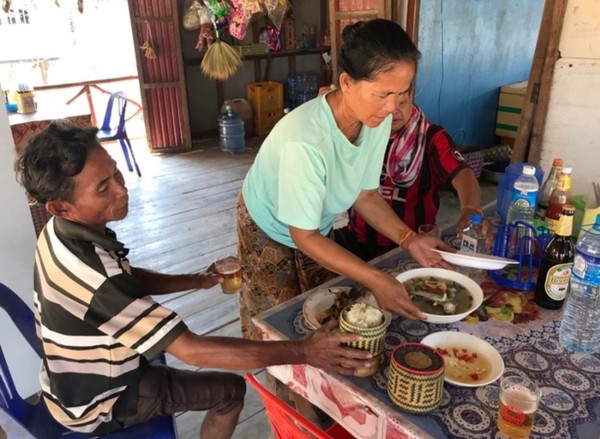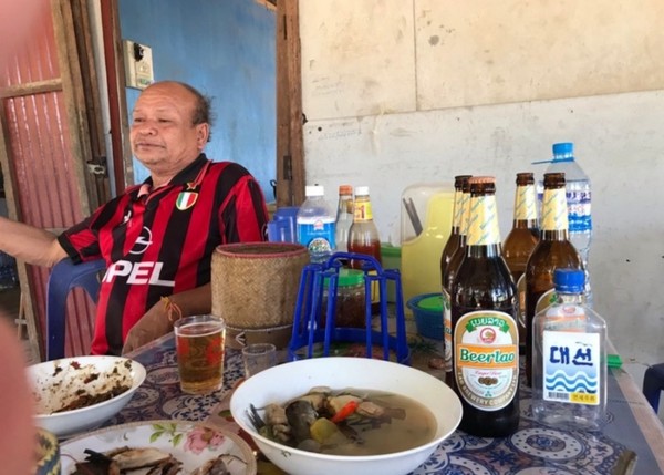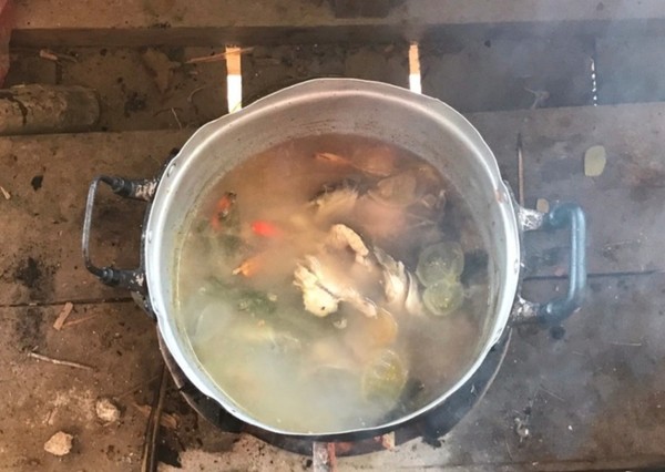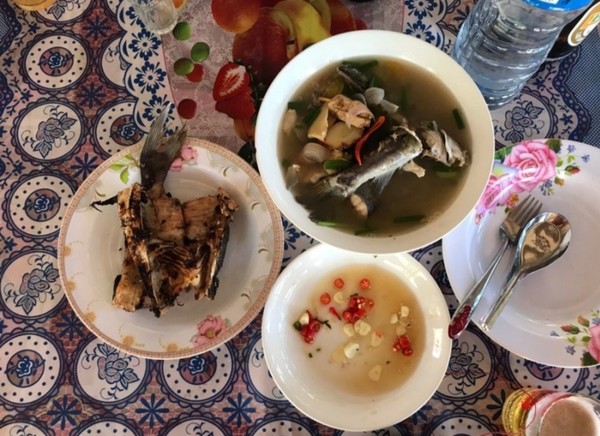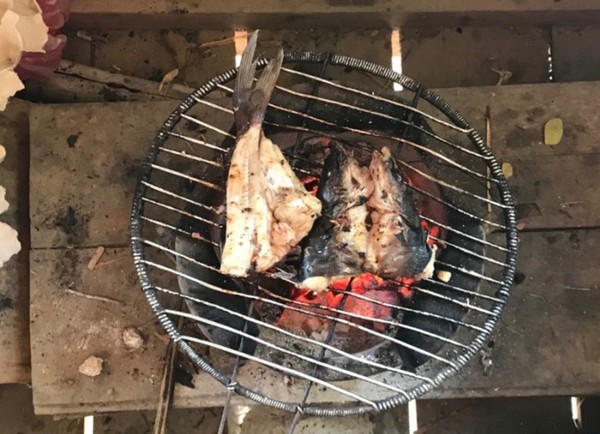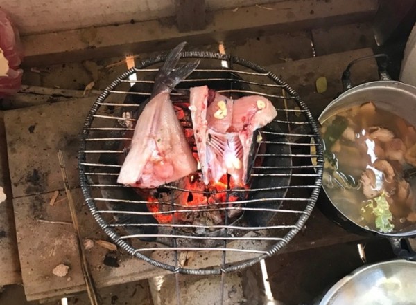 부엌에선 이미 메기가 노릇노릇 맛있게 구어지고 라오스식 메기탕이 냄비에서 끊고 있다.