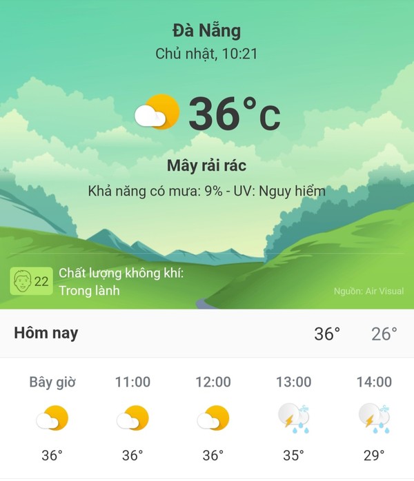 중부 다낭은 열대지역으로 여름과 가을 날씨만 있다.