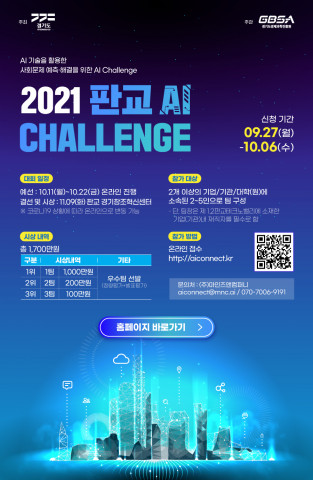 (서울=뉴스코리아) 김한규 기자 = 경기도가 주최하고, 경기도경제과학진흥원이 주관하는 ‘판교 AI Challenge’ 대회 접수가 시작됐다.