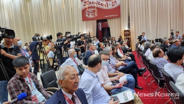 (타슈켄트=뉴스코리아) 신현권 특파원 = 타슈켄트 국제 영화제의 기자회견은 우즈베키스탄 공화국 부총리 아지즈 압두카키모프(Aziz Abdukhakimov)와 우즈베키스탄 피르다프 압두칼리코프(Firdavs Abdukhalikov) 촬영국 국장이 참석을 했다.