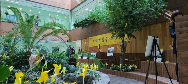 JDC 엘리트빌딩 내 세월호 자료와 노란 리본, 바람개비를 전시하여 세월호 기억정원을 조성하고, 전 직원에게 노란리본을 배포하여 세월호를 상기하고 기억할 수 있도록 했다.
