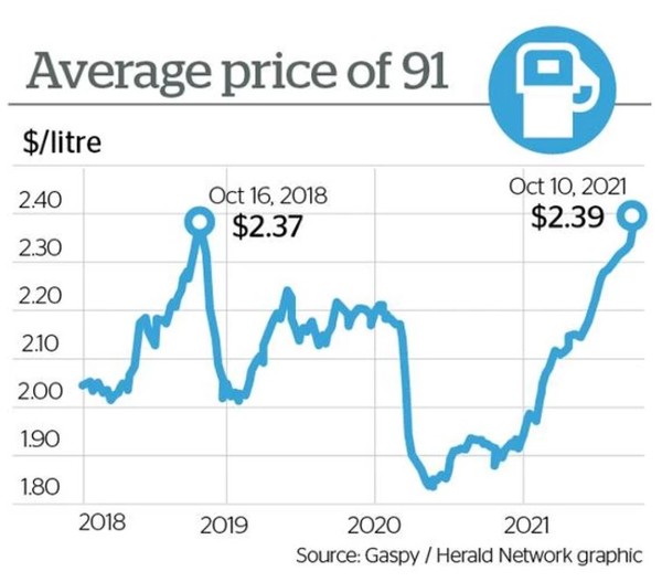 휘발유 가격이 오른다는 소식과 함께, 전국적으로 많은 주유소들은 리터당 2달러 50센트 이상을 받고 있는데, 이는 이미 다른 분야에서 물가 상승에 직면하고 있는 키위들에게 엎친데 덮친격으로 부담을 가중시키고 있다.