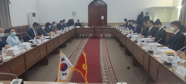 (비슈케크=뉴스코리아) Mamralieva Aids 통신원 = 한키 경제협력위원회가 현지시간 15일, 이시간 현재 키르기즈 경제통상부에서 열리고 있다.