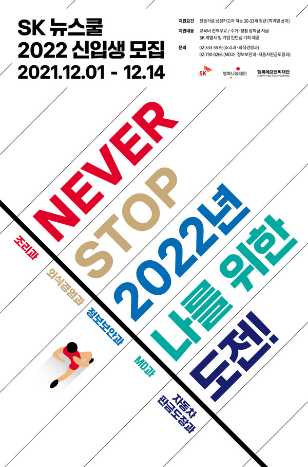 (뉴스코리아=서울) 한기석 기자 = ‘직업을 배우는 진짜 학교’ SK 뉴스쿨이 12월 1일부터 14일까지 2주간 2022년도 신입생을 모집한다.