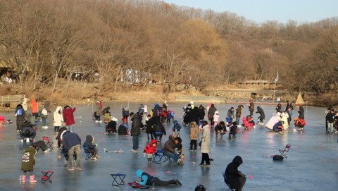 육지에서 체험이 끝났으면 조선 시대 해안을 탐험할 순서다. 민속촌을 가로지르는 지곡천이 안전하게 얼면 빙판 위에서 빙어를 잡는 얼음낚시 체험을 진행한다. 얼음낚시가 어려운 관람객을 위해 수조에서 뜰채로 빙어를 잡는 뜰채 낚시 콘텐츠도 마련됐다. 이 뿐만 아니라, 지곡천에서는 전통 얼음 썰매도 경험하며 즐거운 시간을 보낼 수 있다.