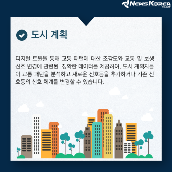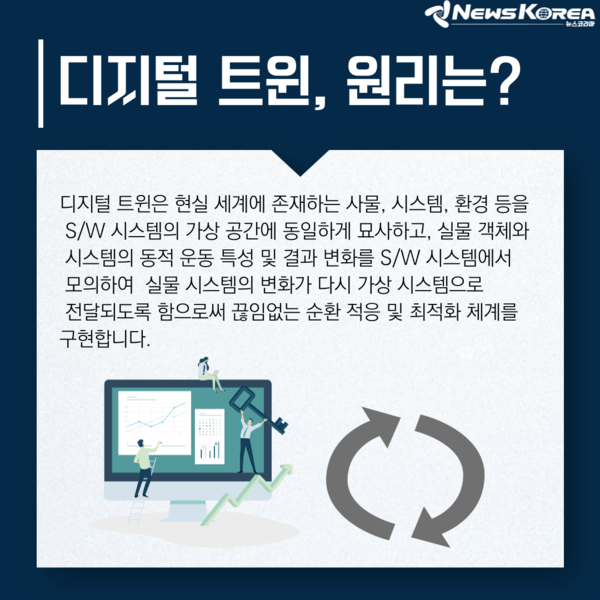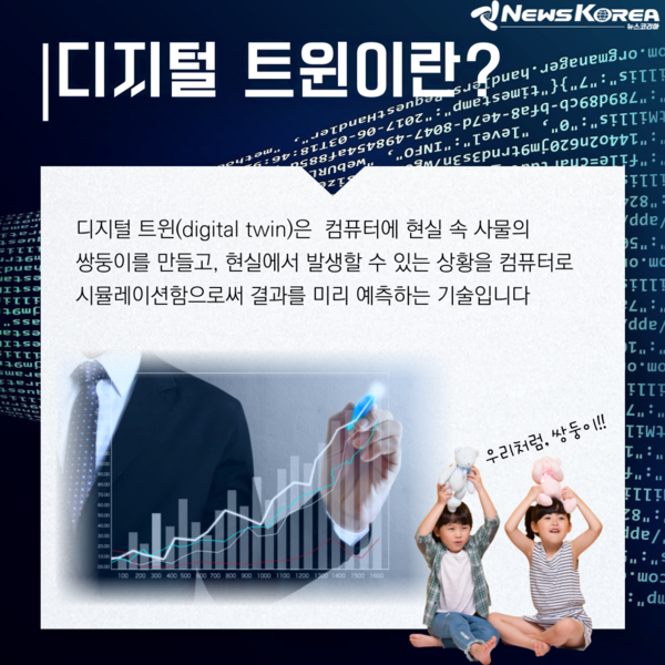 (뉴스코리아=서울) 장현아 기자 = 컴퓨터 속 쌍둥이, 디지털 트원을 아시나요? 이메일 퍼갈게요 장현아 기자 newsjebo@newskorea.ne.kr 저작권자 © 뉴스코리아(NEWS KOREA) 무단전재 및 재배포 금지 이 기사를 후원합니다. 기자에게 원고료 후원 정기구독 정기후원 037-130689-04-011(IBK기업은행)예금주 : 주식회사 뉴스코리아 후원하기 개의 댓글 회원로그인 댓글 내용입력 댓글 정렬 BEST댓글 BEST 댓글 답글과 추천수를 합산하여 자동으로 노출됩니다. 닫기 더보기 댓글삭제 삭제한 댓글은 다시 복구할 수 없습니다. 그래도 삭제하시겠습니까? 비밀번호 닫기 댓글수정 댓글 수정은 작성 후 1분내에만 가능합니다. 본문 / 1000 비밀번호 닫기 내 댓글 모음 닫기