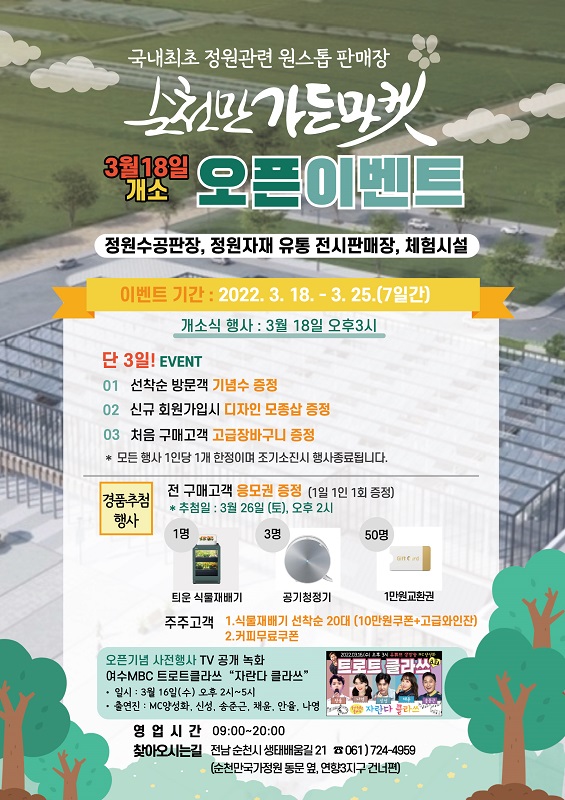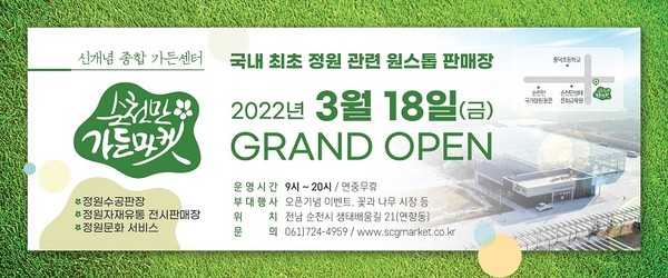 국내 최초 정원 관련 원스톱 판매장으로 단장된 『순천만 가든마켓(대표 채승연)』이 3월 18일 정식 개장한다.