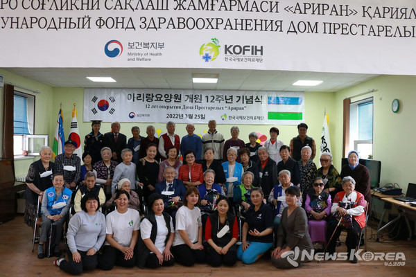(타슈켄트=뉴스코리아) 신현권 특파원 = 우즈베키스탄 아리랑요양원은 2006년 한국-우즈베키스탄 양국 정부 간 고려인들을 위한 요양원 설립에 합의하여 우즈베키스탄 정부의 도움을 받아, 2010년 3월 26일에 개원하여 올해로 12주년을 맞이 하였다.