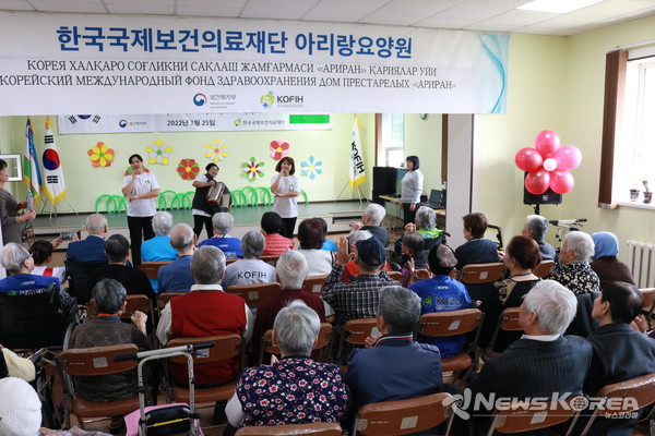 아리랑요양원을 운영하는 보건복지부, 한국국제보건의료재단(KOFIH)은 주우즈베키스탄 대한민국대사관, 고려인문화협회와 함께 우즈베키스탄 재외동포 지원사업을 적극적으로 수행하고 있다.