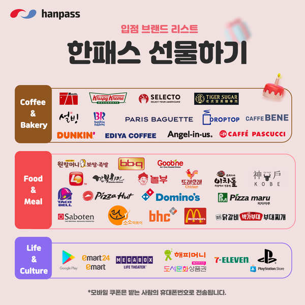 모든 한패스 회원이라면 누구나 간단한 동의서만 클릭하면 이용 가능하며, 결제 후에 바로 기프티콘을 사용할 수 있다. 이용하고 있는 한패스 월렛을 통해 결제 가능하며, 결제 시 6자리 비밀번호만 입력하면 선물도 하고 알뜰하게 할인금액으로 구매 가능한다. 그리고 각종 기념일을 잘 챙길 수 있다.