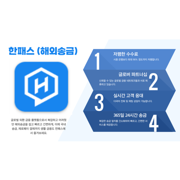 한패스(hanpass)는 언제 어디서나 가장 저렴하고 신속하게 송금할 수 있다는 장점이 있다.