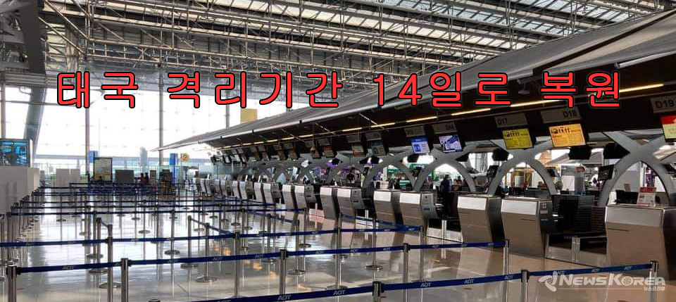 태국은 관광 재개를 위한 일환으로 지난달 4월1일부터 격리기간을 7일 또는 10일로 줄였으나 이번 통제 조치로 해외에서 입국하는 모든 사람에 대해 예외 없이 격리기간을 다시 14일로 복원했다.