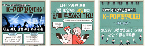 (서울=뉴스코리아) 최성민 기자 = 한국청소년연맹(총재 임호영)이 ‘2022 국제청소년캠페스트’ 행사인 청소년 오디션 ‘K-POP 경연대회’의 확정된 본선 댄스팀의 온라인 투표를 7월 31일까지 진행한다.
