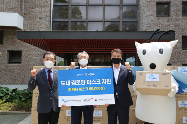 KF94 방역 마스크 8만장은 대한적십자사 제주특별자치도지사(회장 오홍식)를 통해 제주 도내 각 경로당 450여 곳에 전달될 예정이다.