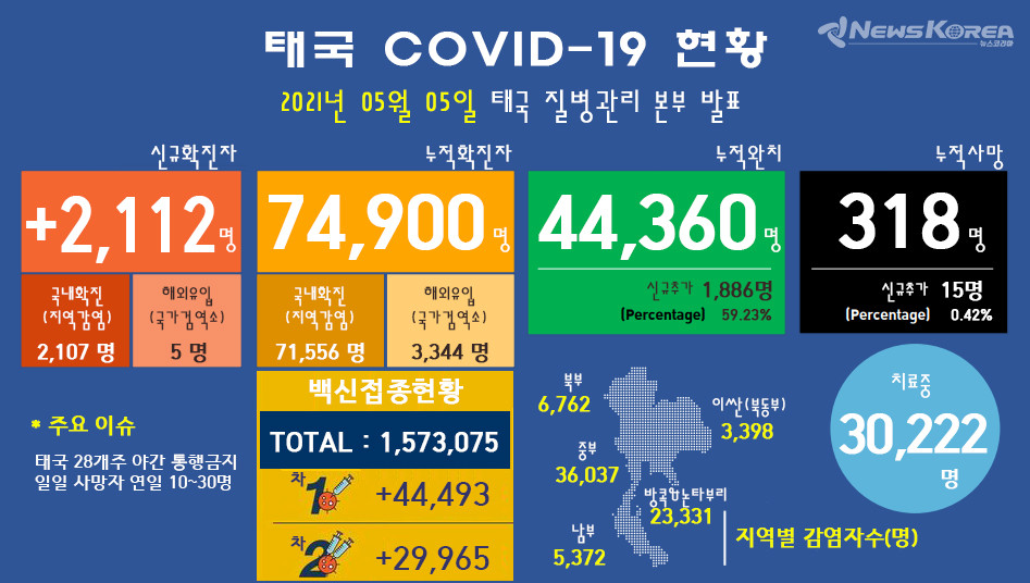 마지막 업데이트 : 2021/05/05 11:47 (태국 질병 관리 센터)