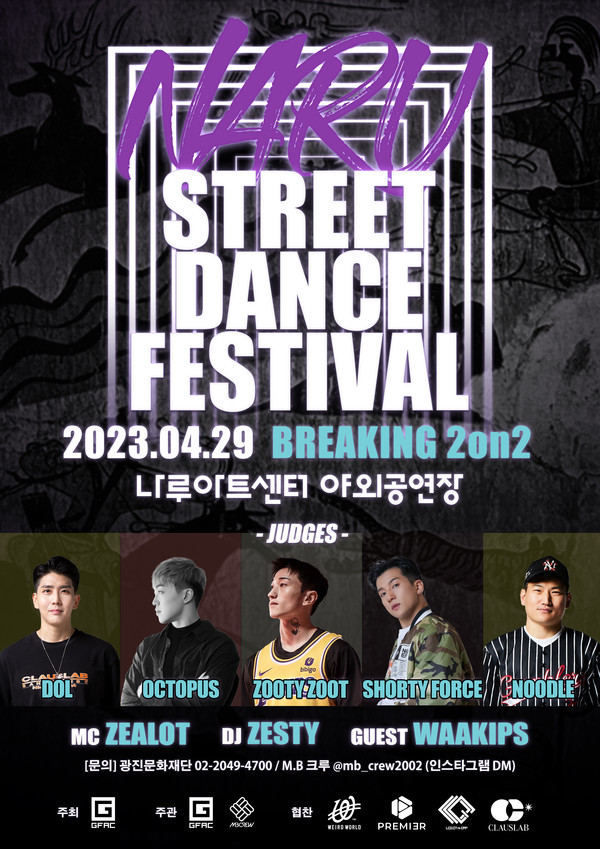(뉴스코리아=서울) 박지혜 기자 = 2023년 4월 29일(토) 15시 ~ 20시 까지 광진구에 위치한 나루아트센터 야외광장(우천시 나루아트센터 전시실)에서 <2023 나루 스트릿 댄스 페스티벌>이 열린다.