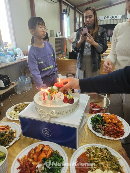 기자가 찾은 2일은 마침 필리핀 클레토 데이비드 목사의 18살된 딸(에스더)의 생일이 있는 날이라 푸짐한 생일음식들이 마련되어 평소보다 더욱 픙성했다.