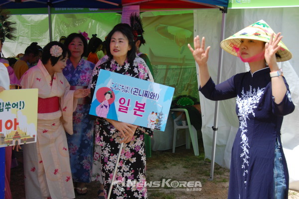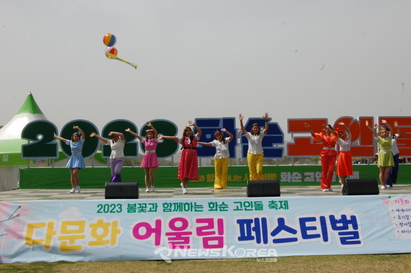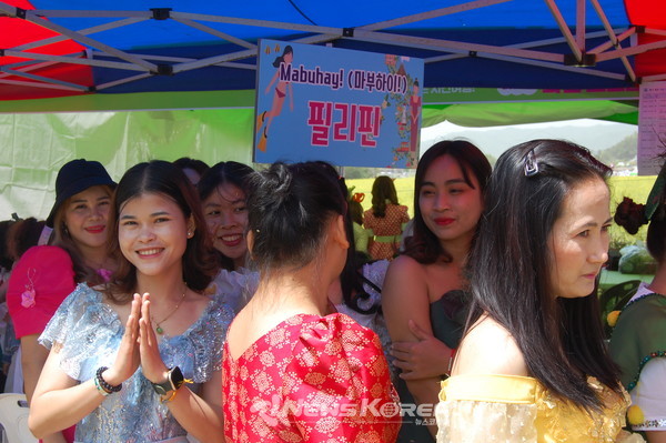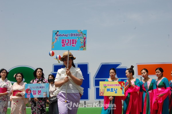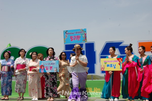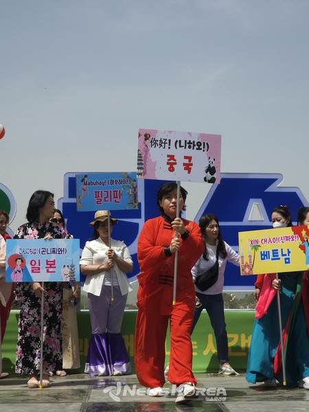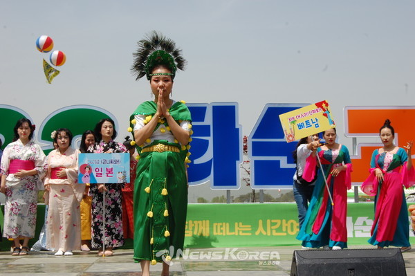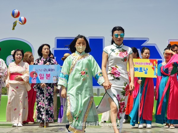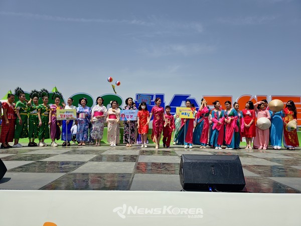 (뉴스코리아=화순) 최신 기자 = 22일 '2023 화순 고인돌 축제' 주무대에서 캄보디아, 필리핀, 베트남, 일본, 중국, 우즈베키스탄, 키르기스스탄등 화순 거주 결혼이주 여성들이 각 국가별 전통의상으로 자녀들, 남편들과 함께 행사장을 찾은 방문객들에게 무대인사를 위한 연습무대를 갖고 있다.