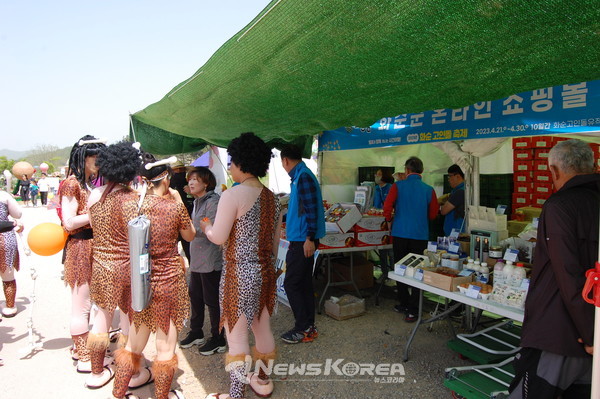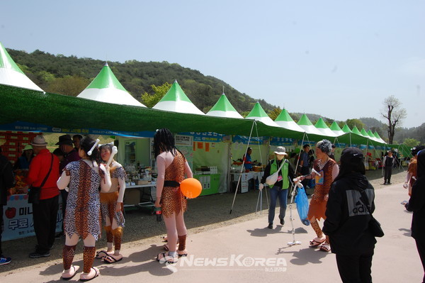 (뉴스코리아=화순) 김희수 기자 = 22일 토요일 오후, 고인돌 축제 현장에 유인원 분장을 한 퍼포먼스팀이 등장했다.