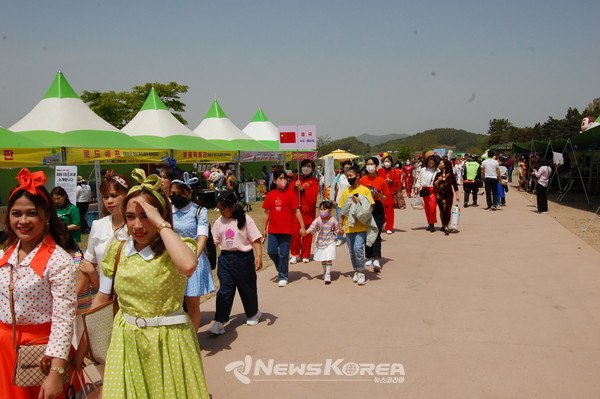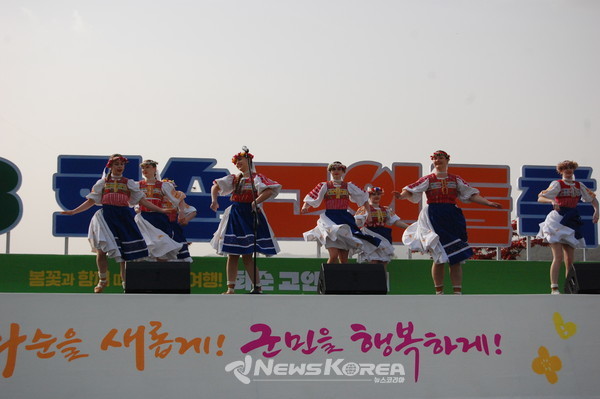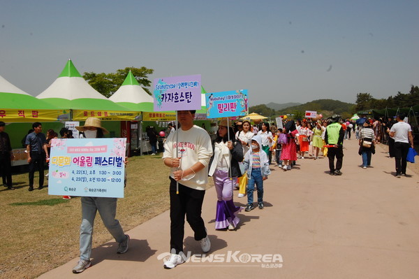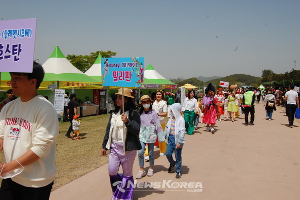 카자흐스탄, 필리핀, 중국, 일본, 캄보디아등의 국가명과 각 국가별 인사말이 들어있는 팻말을 따라 실제 화순군에 거주하는 다문화 가족들의 행렬이 이어지고 있었다.